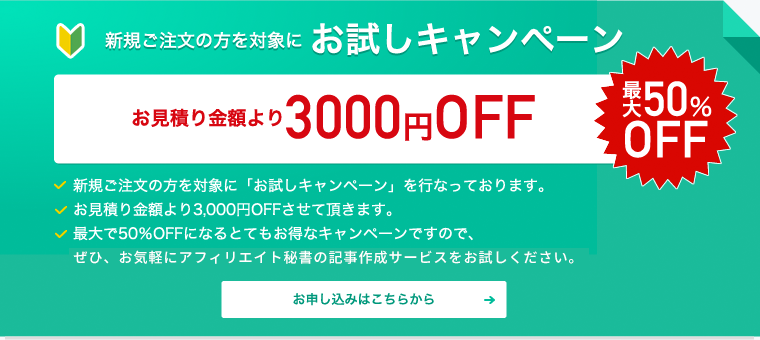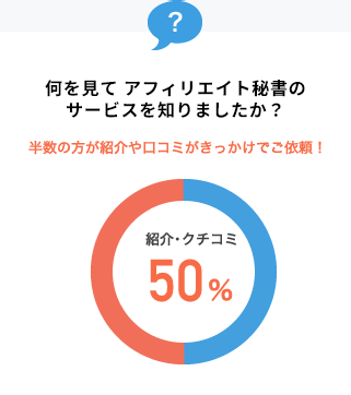 • いつも決まった方のアフィリエイトブログを読んでいて、アフィリエイト秘書の存在を知りました。そこで記事をアフィリエイト秘書に依頼したらとてもレベルが高い記事がと紹介されてましたので、今回依頼させて頂きました。