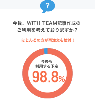 「また依頼したい」そう思っていただけるよう、ひとりひとりのお客様にきちんとご満足いただけるよう、担当TEAM・ライター・校正と、スタッフが一丸となって記事を作り上げます。